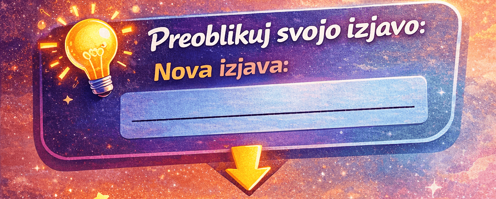 Pomisli na nekaj, za kar si do zdaj verjel/-a, da ni zate. Lahko je iz šolskega sveta, športa, odnosov, hobijev, nastopanja ali kaj čisto osebnega.